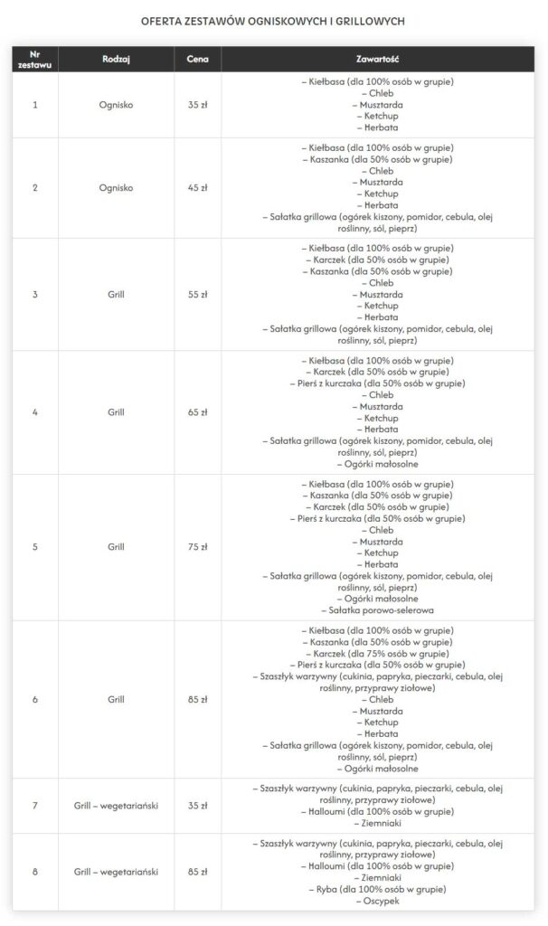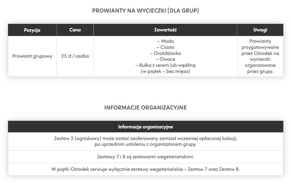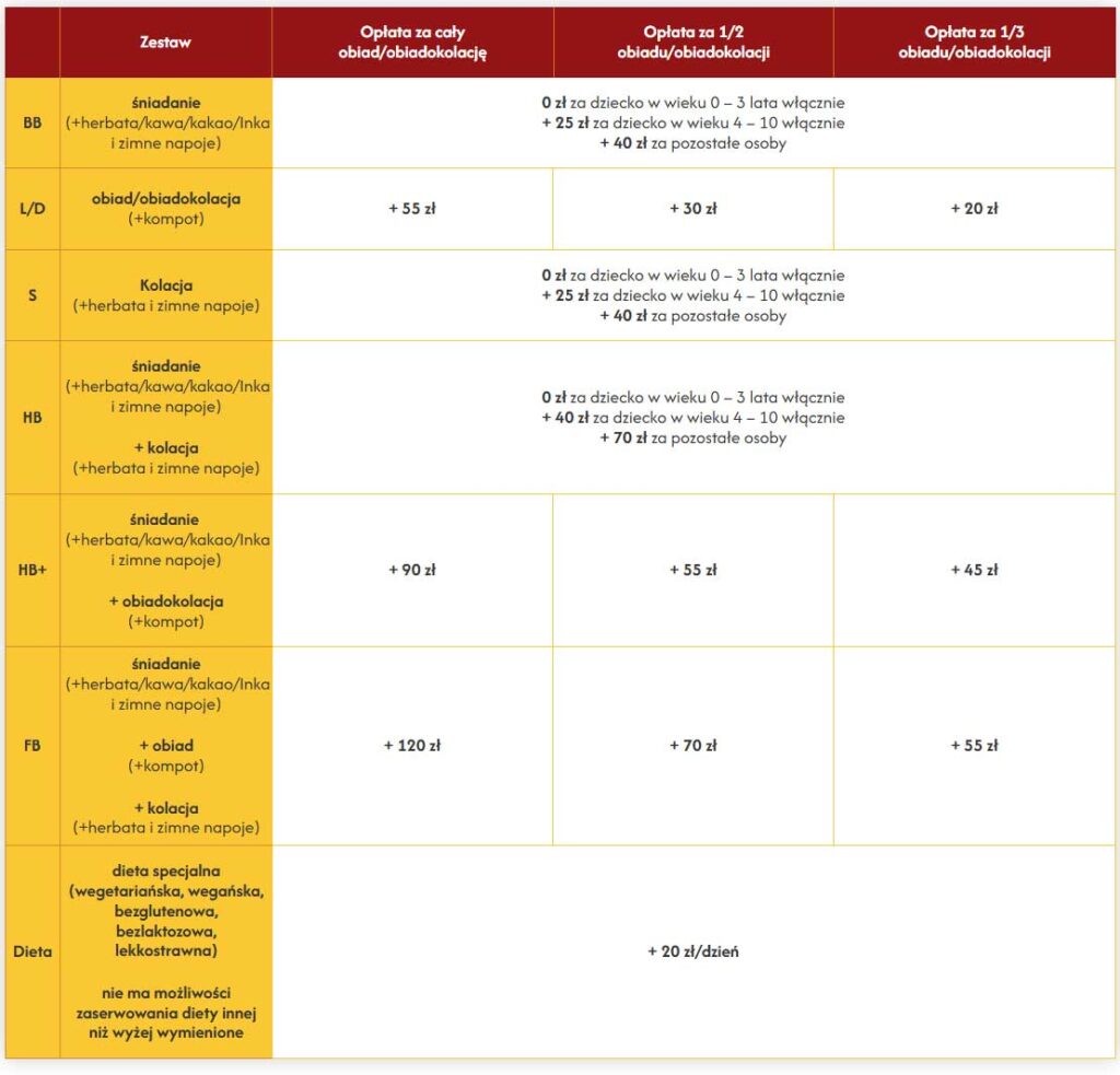 Cennik Pobytu i Wyżywienia